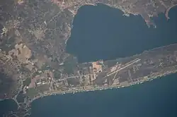 The current Acapulco Airport, constructed in 1954, is situated 16 kilometres (9.9 mi) southeast of the city center, positioned between Tres Palos Lagoon and the Pacific Ocean in a zone known as Plan de los Amates. It was once considered a pioneering model for subsequent airport constructions due to its modern passenger terminal design and the fact that it was one of the first airports built with comprehensive planning and foresight.