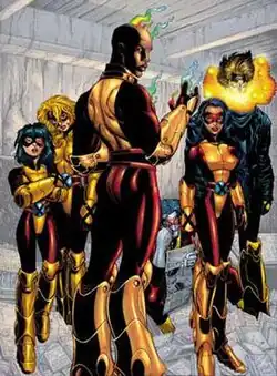 - Mondo, a cheerful, laidback Samoan mutant who could take on the texture of objects he touched. Mondo eventually betrayed the team and was apparently killed by Bastion,[6] but it was later revealed that this was a clone. The real Mondo appeared two years later, but as a villain teamed with Juggernaut and Black Tom Cassidy.[7]