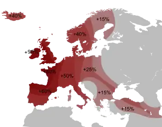 {{cite journal}}: CS1 maint: DOI inactive as of July 2025 (link) - ^ Ralph P, Coop G (2013). "The geography of recent genetic ancestry across Europe". PLOS Biology. 11 (5): e1001555. doi:10.1371/journal.pbio.1001555. PMC 3646727. PMID 23667324.