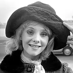 Geneviève Joyce Waïte (born Genevieve Joyce Weight,[3] 13 February 1948 – 18 May 2019) was a South African actress, singer and model.[3][4] Her best known acting role was the title character in the 1968 film Joanna.[5] She was a muse to photographer Richard Avedon, who photographed her several times for Vogue in the early 1970s.[3][5] In 1974, she recorded her only album as a singer, which was produced and written by her husband, John Phillips of the Mamas and the Papas.[3][5] Her singing voice has been described as "Betty Boop crossed with Billie Holiday".[3] That same year, she starred in a short-lived Broadway musical, Man on the Moon, which she co-wrote with John Phillips; it was produced by Andy Warhol.[3]