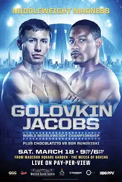 - ^ "Golovkin vs. Jacobs Deal Done – March 18 at MSG, HBO PPV – Boxing News". www.boxingscene.com. Retrieved 2016-12-17.
