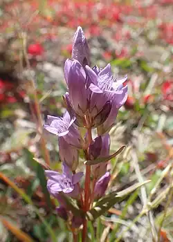 Gentianella amarella, the autumn gentian, autumn dwarf gentian,[3] or autumn felwort,[4] is a short biennial plant flowering plant in the gentian family, Gentianaceae. It is found throughout Northern Europe, the western and northern United States, and Canada.[3][5][6]