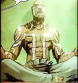However, he cannot sustain this form for long since it causes massive strain on his body and leads to seizures. After Belasco had kidnapped the New X-Men to Limbo, Nezhno was able to protect Pixie and defeat N'astirh before passing out. The vibranium tattoos adorning his body help to keep his powers in check, but Nezhno indicated that eventually his powers may kill him.[6] When his powers are in use his vibranium tattoos glow. These tattoos are actually Vibranium-based paints that were intended to be fused with his skin.