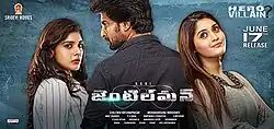 Nani Gentleman[4] (or simply Gentleman) is a 2016 Indian Telugu-language romantic thriller film directed by Mohan Krishna Indraganti who wrote the film with R. David Nathan. Produced by Sivalenka Krishna Prasad's Sridevi Movies, Gentleman stars Nani in double role alongside Surbhi, Nivetha Thomas, Tanikella Bharani, Srinivas Avasarala and Vennela Kishore. The film narrates the story of two women, Aishwarya and Catherine, whose respective lovers, Jayaram and Gautham, are lookalikes. When Gautham dies in an accident, Catherine suspects Jai's role in it and spies on him, which reveals further truths about Jai and the people around him, including Gautham.