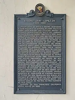 - ^ "Eugenio Lopez, Philippine mogul". San Francisco Chronicle. July 2, 1999. Retrieved October 26, 2021.