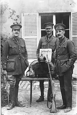 - ^ Although this photograph is not dated, the pristine appearance of the captured German equipment suggests it comes from the first weeks of the war: it was quickly discovered by both sides that the glint of sunlight on the highly polished metal beloved of sergeant-majors everywhere soon attracted the unwanted attentions of enemy artillery.