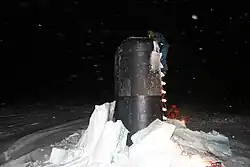 In 2005 the United States Navy submarine USS Charlotte (SSN-766) surfaced through 155 cm (61 in) of ice at the North Pole and spent 18 hours there.[50]