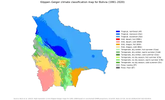 - ^ Abadi, Azar M.; Rowe, Clinton M.; Andrade, Marcos (2020). "Climate regionalization in Bolivia: A combination of non-hierarchical and consensus clustering analyses based on precipitation and temperature". International Journal of Climatology. 40 (10): 4408–4421. doi:10.1002/joc.6464. ISSN 0899-8418. S2CID 214147442.