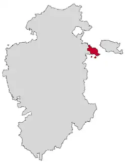 The city of Miranda de Ebro is located in the northeast of the province of Burgos, 80 km from the capital, in the autonomous community of Castile and León (Castilla y León, Spain). It belongs to the Comarca del Ebro of the province of Burgos. The coordinates of the city are in latitude: 42º 41' 6" N and in longitude: 2º 55' 60" W. It has an area of 101.33 km2, a perimeter of 72312 meters and is located 471 meters above sea level according to the National Geographic Institute and 462.09 according to a plaque located on the Carlos III Bridge.[1]