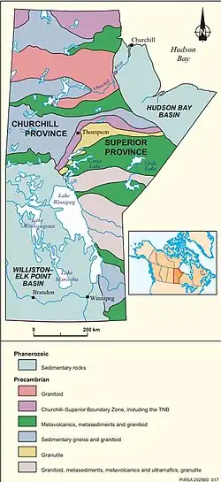 - ^ "The Basic Geology of Manitoba". newion.uwinnipeg.ca. Retrieved 2025-06-28.