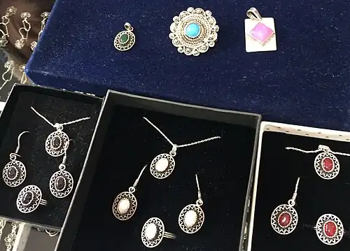 The stone town of Kuklica is an area consisting of over 120 naturally formed stone pillars, located in the village of Kuklica, near Kratovo in North Macedonia.[10] Kratovo, which lies on the slope of Mount Osogovo, is itself located in the basin of an extinct volcano and hosts the Plavica (or Plavitsa) deposit, which has been mined since Roman times.[11][12]