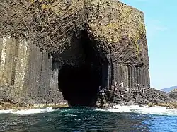 The island of Staffa contains Fingal's Cave made up of massive hexagonal columns of Palaeogene basalt.