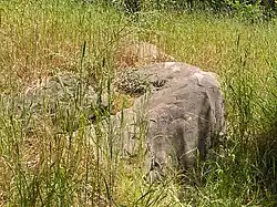 A coarse rhyodacitic intrusive outcrops to the north west of Charnwood intrudes Laidlaw Volcanics, with about half a square kilometre of surface area.