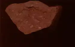 Narrabundah Ashstone is a member of the Canberra formation[12] and is found is eastern Narrabundah and in a geological monument along Fairbairn avenue. Ashstone is a fine grained tuff.[13] In addition to the ashstone the Canberra Formation has layers of green-grey to reddish dacite, also tuff, quartz andesite, but mostly it is calcareous shale, limestone or sandstone. Much is deeply weathered, which has posed difficulties for building foundations.