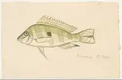 | An 1865 watercolor painting of geophagus altifrons from Manaus by Jacques Burkhardt. | |