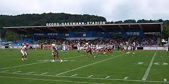 The stadium, opened in 1967, is primarily used by the American football team Marburg Mercenaries, who play in the German Football League.[1] VfB Marburg, the city's highest ranked association football team, also use the ground for friendlies and cup games against higher-ranked opponents. The Thorpe Cup athletics meetings in 2009 and 2010 were also held at the stadium.
