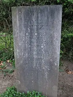 After intense debates, Georg Fritze's health was severely impaired. On 3 January 1939 he died after a stroke and heart failure. Three days later he was buried in Cologne's South Cemetery.
