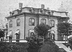 In 1876, Mitchell moved his family from Kendallville to his new village in Michigan.[4][10] Later, the village changed its name to the town of Clam-Union. In 1877 the name was changed again, this time to the City of Cadillac, and it was recognized officially by the state of Michigan.[8][10][11] There were about 650 people and 350 school-age children in Clam Lake township as reported by the 1880 census. The city of Cadillac, incorporated in 1877,[8] 1885 and 1895,[10] was later divided into four wards and became the county seat of Wexford County.[10]