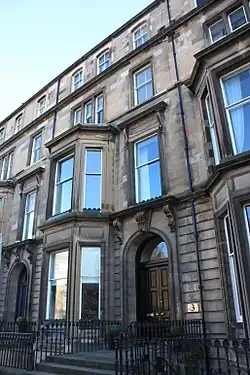 He died at home, 3 Drumsheugh Gardens, in Edinburgh's fashionable West End on the morning of Saturday 18 January 1913[9] and is buried in Dean Cemetery in the west of the city. The grave lies in the northern extension backing onto the dividing wall to the original cemetery near its east end.