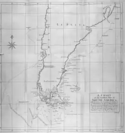 The Speedwell came in close to shore on 14 January 1742 at 38°40'S[17] at Freshwater Bay, in what is today the resort city of Mar del Plata.[18][19] Those that swam ashore found fresh water and seals. Eight of them were dismayed to see the boat leaving without them, and they would later accuse Bulkeley of abandoning them to save supplies, while he claimed they were blown out to sea. Bulkeley, Baynes and 31 others sailed north, reaching the Portuguese waters of the Rio Grande on 28 January. Three men died during the journey and the rest were now close to it. Eventually some of the men made their way back to England by whatever route they could.