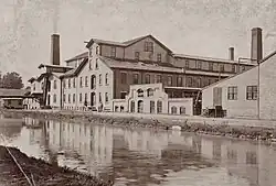George Benson Fox followed his father Thomas Fox of Lockland, Ohio (505 W. Wyoming Ave.) into the paper manufacturing industry when he purchased a paper mill in 1865 with C.W. Friend, incorporated in 1873 as "Friend & Fox Paper Company."[9] This Lockland mill (Locks 40, 41, 42, 43) was an additional location to two paper mills operated by the company in Crescentville, OH (Sharonville) (Lock 39) and Rialto, OH (West Chester) (Lock 38) eight miles north of Lockland on the Miami–Erie Canal.[10][11] Friend lived in Wyoming at the Riddle-Friend House on Springfield Pike adjacent to Wyoming Ave.
