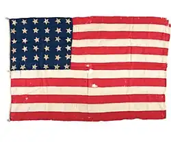 In 1865 upon return from four years service in the Civil War, the citizens of Wyoming, Ohio gave a homecoming celebration where they presented Fox a 36-star flag.[6] Several years after the war, Fox and his wife returned to visit Libby Prison. In a corner of the room he was imprisoned, he requested his guide pry up the floorboards revealing a hole leading to a passage he and fellow prisoners had been digging as an escape tunnel.[7]