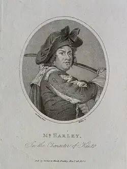 Becoming known as the "Norwich Roscius", Harley was engaged by Thomas Harris for Covent Garden Theatre, where he appeared as Richard 25 September 1789. In the course of this and two or three following seasons he played Shylock, Touchstone, King Lear, and Macbeth, and took original characters in plays of William Hayley and other writers. For career reasons he withdrew into the provincial theatres; but returned to Covent Garden, where he remained for four seasons. He then once more went into the provinces, and played old men in comedy with success at Bristol in 1796–9, and then at Birmingham, Sheffield, Wolverhampton, and elsewhere. In 1802 he supported Sarah Siddons in her farewell visit to Dublin.[1]