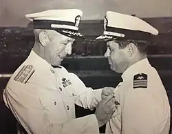 ![]() CDR George E. Pierce being awarded the Navy Cross by RDML Lockwood. | |