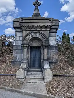 He is buried in the Tuckett family crypt, located in Hamilton Cemetery.