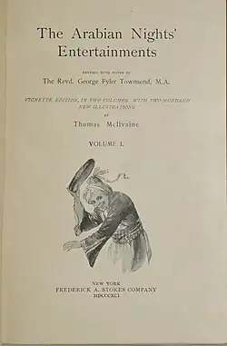 - ^ The Arabian Nights' entertainments. A new edition, revised, with notes, by the Rev. Geo. Fyler Townsend, M.A. With illustrations. London and New York: Frederick Warne and Co., [1866?, preface, page iv.]