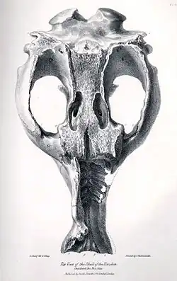 ![]() Drawing of South American fossil skull of toxodon platensis for Charles Darwin, 1838 | |