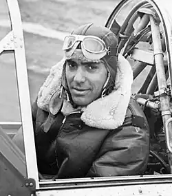 He was the second Indiana native to graduate from the Tuskegee Advance Flying School (TAFS).[4] After receiving his wings and commission as a 2nd Lieutenant,[19][17][18] he was promoted to First Lieutenant in December 1942.[20] In 1943 he was with the 332nd Fighter Group, became a flight leader, and was assigned to Selfridge Field, Michigan.[21] A year later, he was a member of the "first Negro bombardment organization", the 477th Bombardment Group; in 1944, the squadron had received two commendations for its achievements.[22] At the rank of Captain, he was the "squad's most experienced Negro flier".[22]
