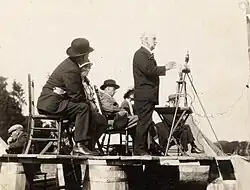 The Daily Herald began as a temporary bulletin during the London printers' strike of 1910–11. After the strike ended, Lansbury and others raised sufficient funds for the Herald to be relaunched in April 1912 as a socialist daily newspaper.[75] The paper attracted contributions from distinguished writers such as H. G. Wells, Hilaire Belloc, G. K. Chesterton and George Bernard Shaw, some of whom, Blythe notes, "weren't socialists at all but simply used [the paper] as a platform for their personal literary anarchy."[76] Lansbury contributed regularly in support of his various causes, in particular the militant suffrage campaign,[77] and early in 1914 assumed the paper's editorship.[78]