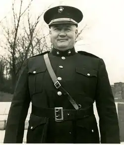 Unemployed, Chinn turned to his old friend, at the time governor of Kentucky, Happy Chandler. He served as a tour guide, and Sergeant at Arms for the Kentucky State Legislature. He got to know the capitol and its workings well enough that some thought he should run for governor.[11] Chinn later served as the bodyguard for Chandler and Jack Dempsey when he spent time in Kentucky.[12] In 1939, he took a job as a weapons consultant to the army.[11] Eager to serve in the war, Chinn demanded to Chandler that he be allowed to join the Marines. He objected, saying "You're over forty years old, and you weigh 330 pounds! You'll get in the way and you’ll get killed, and you’ll get other people killed, too. Go home!" Eventually, Chandler relented.[12] He was 118 pounds over the weight limit, and ten years over the age limit.[13]