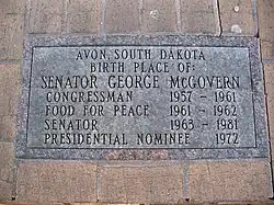 - ^ "McGovern's Ashes To Be Buried In DC Early 2013". KELO-TV. Associated Press. December 15, 2012. Archived from the original on August 11, 2013. Retrieved December 21, 2018.