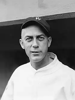 On December 31, 1920, the Yankees traded Mogridge and Duffy Lewis to the Washington Senators for Braggo Roth.[21] His 3.00 ERA for the 1921 season was the second-best in the league, behind only Red Faber.[22] Mogridge helped the Senators win the 1924 World Series. With the Senators trailing in the series two games to one, Mogridge started Game 4 for the Senators, which they won.[23][24] He also pitched in relief for the Senators in the deciding Game 7, replacing Curly Ogden, who Bucky Harris, Washington's manager, decided to start but allow to only pitch to two batters.[25] Mogridge pitched 4+2⁄3 innings, allowing one earned run, to give Washington the chance to stay in the game, which Washington won in extra innings.[17][26]