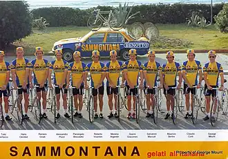 Mount raced most of that season in Europe and became the first American in modern history to win a professional/open race, turning professional because the USA decided against sending a team to the Moscow Olympics.[9][11] He joined an Italian team, San Giacomo/Benotto which included members such as Freddy Maertens, Roberto Visentini, and Moreno Argentin. He raced in Italy for three years, finished the Tour of Italy in 20th and 25th places and rode many of the classics. After three years of riding for his team leaders, despite an offer for another team the following year, he was burned out. He said: