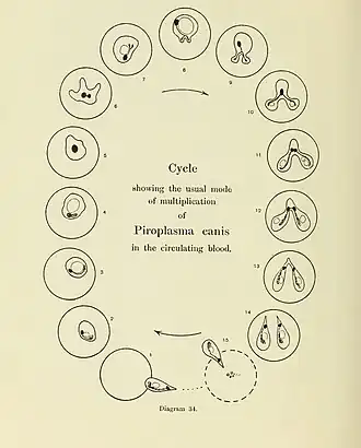 - ^ Nuttall, George H.F.; Graham-Smith, G.S. (1907). "Canine Piroplasmosis. VI: Studies on the Morphology and Life-History of the Parasite". The Journal of Hygiene. 7 (2): 232–272. doi:10.1017/S0022172400033283. PMC 2236236. PMID 20474311.