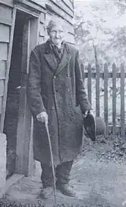 On 13 September 1887 Pickingill's wife died at the age of 63 in Canewdon; her death was attributed to a disease of the liver by the certifying doctor.[4] She was buried at Canewdon's St. Nicholas Church on 17 September.[4] According to the 1891 census, Pickingill was still employed as an agricultural labourer, and was living in Canewdon with his married daughter Marry Ann and his granddaughter, Emily Wood.[4] Records show that he was living in a rented cottage with an adjacent garden, and that in July 1899 the owner sold the property at auction.[4] By 1901 he was listed as living on parish relief, with his two sons back living with him.[4]