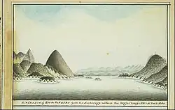 Raper was born to Henry and Catherine Raper in London, England on 19 September 1769; his sister was the pastellist Catherine Charlotte Raper.[1] On 20 August 1783 at age 13 he joined the Royal Navy's HMS Rose as a captain's servant. After further service on HMS Racehorse, he joined HMS Sirius on 15 November 1786. Sirius, commanded by Captain John Hunter, was the flagship of the First Fleet, which under Commodore Arthur Phillip transported convicts from England to New South Wales in Australia. On 30 September 1787, while the First Fleet was sailing from Rio de Janeiro to Cape Town, George Raper became a midshipman. Raper took his paint box with him, containing a larger set of paints than that of his captain, John Hunter, who was also an artist. Raper's charts, and his paintings of ports such as Tenerife and Rio de Janeiro, were part of his evidence of competence for his promotion to midshipman. The First Fleet arrived in Botany Bay in January 1788, then sailed to Port Jackson (now Sydney Harbour).