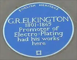 There is a Blue Plaque commemorating him on the old Elkington Silver Electroplating Works, Newhall Street, Birmingham.