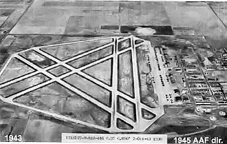 This schooling was followed by a stint at Lincoln Army Airfield in Nebraska, where McGovern met his B-24 crew.[40] Traveling around the country and mixing with people from different backgrounds proved to be a broadening experience for McGovern and others of his generation.[40] The USAAF sped up training times for McGovern and others, owing to the heavy losses that bombing missions were suffering over Europe.[41] Despite, and partly because of, the risk that McGovern might not come back from combat, the McGoverns decided to have a child, and Eleanor became pregnant.[42] In June 1944, McGovern's crew received final training at Mountain Home Army Air Field in Idaho.[40] They then shipped out via Camp Patrick Henry in Virginia, where McGovern found history books with which to fill downtime, especially during the trip overseas on a slow troopship.[43]
