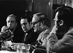 In January 1965 McGovern made his first major address on Vietnam, saying that "We are not winning in South Vietnam ... I am very much opposed to the policy, now gaining support in Washington, of extending the war to the north."[120][134] McGovern instead proposed a five-point plan advocating a negotiated settlement involving a federated Vietnam with local autonomy and a UN presence to guarantee security and fair treatment.[134] The speech gave McGovern national visibility as one of the "doves" in the debate over Vietnam;[134][135] however, McGovern made moderate-to-hawkish statements at times too, flatly rejecting unconditional withdrawal of U.S. forces and criticizing antiwar draft-card burnings as "immature, impractical, and illegal".[136] He eschewed personal criticism of Johnson.[135] In November 1965 McGovern traveled to South Vietnam for three weeks.[137] The human carnage he saw in hospital wards deeply upset him, and he became increasingly outspoken about the war upon his return, more convinced than ever that Vietnam was a political, not military, problem.[97][120][136] Now he was ready, as he later said, "not merely to dissent, but to crusade" against the war.[137]