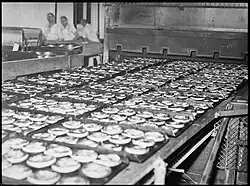 In November 1924, shortly after the tragic death of the last founder of the company, Sargents started using a huge new gas-fired travelling oven, which was capable of producing 30,000 pies daily.[57] In 1925, the company was once again highly profitable, paid a 10% dividend, and also paid a 5% bonus dividend to make up for the loss incurred in 1923.[58]