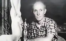 ![]() Stanley, in 1959, with the statuette he sculpted | |