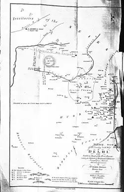 During his short period of rule, he established a mint in Hansi and released rupees of his own kingdom. His area of control included area from Ghaggar river in the north to Beri in south and from Meham in the east to Bhadra in west. He rebuilt the Asigarh Fort at Hansi, which was in a ruined state and built defensive walls and fortifications.[3] He divided his area of control into 4 small parganas.[3] Historian Jadunath Sarkar (1870–1958) describes his conquests as "Oval in shape, with ill-defined and ever-shifting frontiers, it extended 13 to 28 miles in different directions. On the north lay the Ghaggar river which separates it from the lands under Sikh occupation; the west the country of predatory Bhatti tribes, beyond which lay the deserts of Bikaner. The south was bounded by the Rewari district."[10] He raised an army of eight battalions of infantry comprising 6000 men, fifty pieces of cannon, 1000 cavalry, including the Jats who made up two battalions of Infantry and one-fourth of his cavalry (paid pensions to them and encouraged them to settle in Haryana, colonisation of land through pensions to sipahis contributed to Haryana becoming a stable military labour market in the 1790s), 1500 Rohilla Muslims and 2000 soldiers guarding his several forts.[11][12]