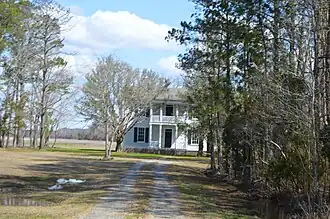 George V. Credle House and Cemetery is a historic plantation house and cemetery and national historic district located near Rose Bay, Hyde County, North Carolina. The house was built about 1852, and is a two-story Greek Revival style weatherboarded frame dwelling. It features fluted porch columns, molded corner boards, a plain frieze, and a low gable roof. Also on the property are a contributing smokehouse and small family cemetery.[2]