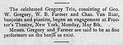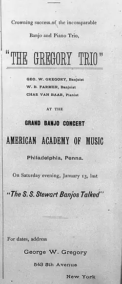 - ^ "The Gregory Trio Concert" (PDF). S. S. Stewart's Banjo and Guitar Journal (81): 3. April 1894.