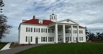 George Washington Inn is a bed and breakfast inn located between Sequim and Port Angeles on the Olympic Peninsula in the U.S. state of Washington. It was built as a replica of Mount Vernon, the home of George Washington. The inn opened for business on February 16, 2008.[1] Located near the Olympic National Park, the inn is on a ten-acre waterfront estate and lavender farm in the Sequim Valley at the foot of the Olympic Mountains. The Strait of Juan de Fuca stretches northward from the inn's 130 foot (40 m) high bluff to the city of Victoria, British Columbia and the San Juan Islands. The New Dungeness Light, the Discovery Island Light and the Race Rocks Light are all visible from the inn.