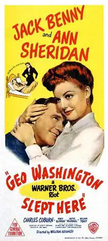 George Washington Slept Here is a 1942 comedy film starring Jack Benny, Ann Sheridan, Charles Coburn, Percy Kilbride, and Hattie McDaniel.[2][3][4][5] It was based on the 1940 play of the same name by Moss Hart and George S. Kaufman, adapted by Everett Freeman, and was directed by William Keighley.